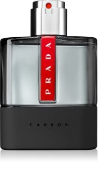 A Carbon Eau de Toilette üvegcséje sokban hasonlít a Prada Luna Rossa sorozat többi illatára. Újak azonban a felhasznált anyagok, amelyekben a szén és különböző textúrák jegyei bukkannak fel – a fekete több formában is megjelenik.